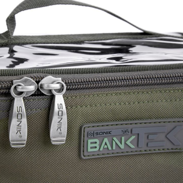 In drei Größen erhältlich, bieten die Bank-Tek Zubehörtaschen eine Vielzahl von Verwendungsmöglichkeiten. Das stabile Design und die Polsterung bieten ausreichend Schutz, und sie sind mit einem praktischen transparenten Deckel ausgestattet, sodass Sie leicht sehen können, was sich im Inneren befindet. Sie verfügen über Ober- und Seitengriffe sowie einen wasserdichten, strapazierfähigen Boden. Alle Taschen sind so dimensioniert, dass sie perfekt in das Bank-Tek-Gepäck passen und Teil eines modularen Aufbewahrungssystems sind.