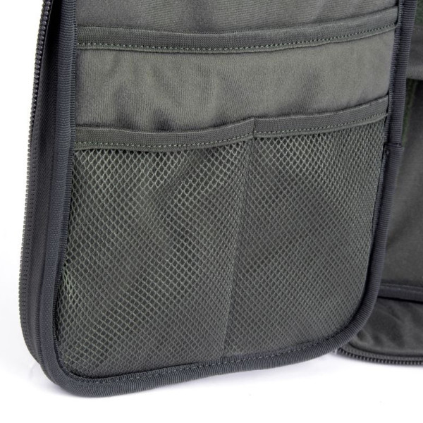 Das BANK-TEK GADGET CASE wurde entworfen, um alle Ihre elektronischen Geräte und batteriebetriebenen Gadgets zu verstauen und zu organisieren, wie Empfänger, Stirnlampen, Kabel, Biwaklampen und Akkupacks. Der innere Stauraum ist vollständig gepolstert und verfügt über herausnehmbare Trennwände, sodass Sie die Aufbewahrung anpassen können. Das Design beinhaltet eine interne Tablettasche und separate Netzstofftaschen zur sicheren Aufbewahrung von Kabeln. Es verfügt sogar über eine Ausklappklappe für die einfache Aufbewahrung des Telefons während des Aufladens. Hergestellt aus strapazierfähigem, schwerem HD 600D PVC-beschichtetem BANK-TEK-Tarnmaterial und einem wasserdichten Boden sowie ausgestattet mit robusten 10-mm-Doppelreißverschlüssen.