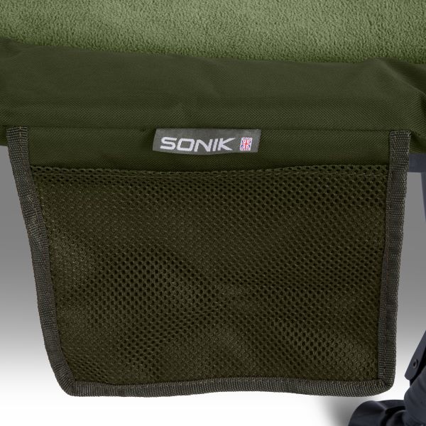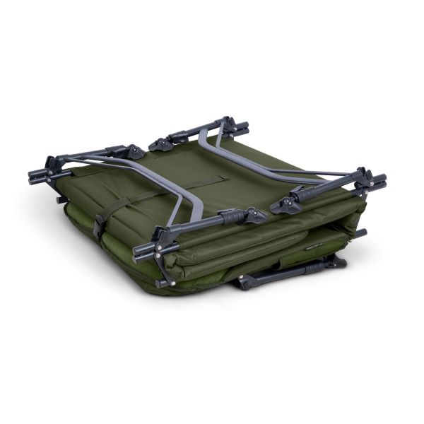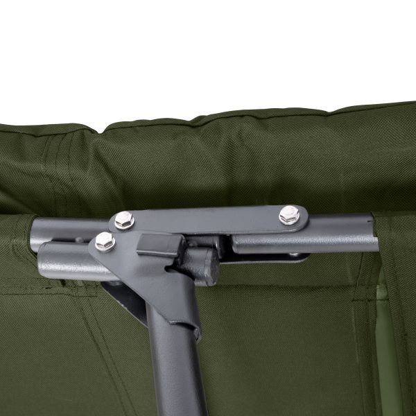 Das Bank-Tek Levelbed bietet zahlreiche Funktionen, um das Schlafen am Ufer äußerst komfortabel zu gestalten. Es verfügt über eine gepolsterte Komfortmatratze und einen erhöhten Kopfbereich und besteht aus unserem HD 600D PU-beschichteten Bank-Tek-Material mit einem Mikrofleece-Bezug für zusätzliche Wärme und Komfort. Weitere Merkmale sind ein robustes Stahl- und Aluminiumgestell mit einem vollständig flachen Profil. Die Beine sind gespreizt, was ein niedriges Profil bietet, und jedes Bein hat einen verkürzten Fußabschnitt für zusätzliche Stärke und Stabilität. Die Füße sind über den Grip-Lok™-Beinmechanismus verstellbar und ermöglichen eine einfache und sichere Höhenverstellung. Die Beine sind außerdem verstärkte Doppelrohrbeine, die alle große schwenkbare Schlammfüße haben. Das übergroße Zwillingsklappsystem ermöglicht es, den Schlafsack beim Zusammenklappen auf der Liege zu lassen. Alle Schrauben, Unterlegscheiben und Befestigungen sind aus Edelstahl gefertigt, was Leichtigkeit und Stärke bietet. Schließlich gibt es zwei praktische Seitenfächer für ein Telefon oder Autoschlüssel. Eine außergewöhnlich gut gemachte Liege, die die Zeit überdauert und Sie bei längeren Sessions komfortabel hält.