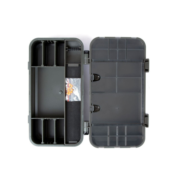 Dies ist die mittlere Tiefenoption aus der LOKBOX™ COMPACT Reihe, wieder perfekt für den mobilen Angler. Dies ist eine kompakte und praktische Tackle Lagerung von seiner besten Seite. Der Deckel beherbergt 21 schlanke Ablagefächer in verschiedenen Größen, für kleinere Klemmgeräte wie Wirbel, Perlen und Rig-Ringe. Die Basis der LOKBOX™ COMPACT S-2 BOX hat vier Hauptfächer, vier Trennwände und ein schlankes Rig Board, das 10 fertige Rigs aufnehmen kann.
