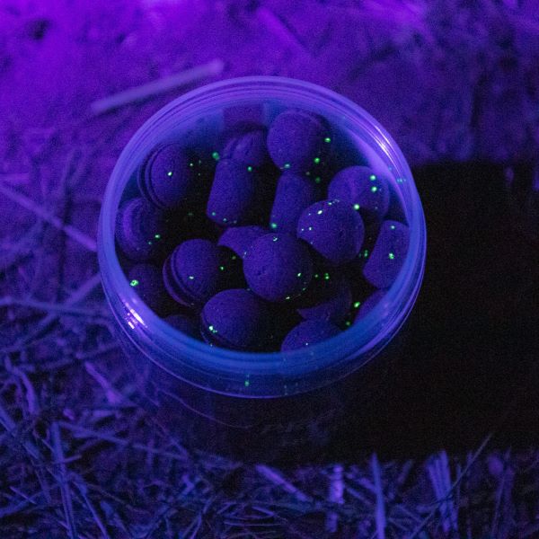 Der Clou: Mache die Nacht zum Tag und den Tag zur Nacht! Mit Hilfe einer UV-Lampe kann das eingearbeitete Leuchtgranulat in den Pop Ups aufgeladen werden. In tieferen Gewässerregionen lässt sich mit diesem Trick der ein oder andere Karpfen mehr überlisten!