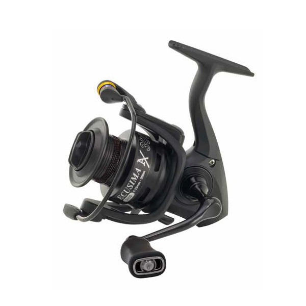 Seit jeher steht der Name ECUSIMA für ein sensationelles Preis-Leistungs-Verhältnis. Die ECUSIMA AX ist ausgestattet mit hochwertigen Edelstahl-Kugellagern und einem Bremssystem, das in dieser Preisklasse Maßstäbe setzt. Kohlefaser-Bremsscheiben sorgen für einen absolut ruckfreien Schnurabzug im Drill. Angenehm leicht liegen die neuen ECUSIMAS in der Hand. Der satte sanfte Lauf erinnert an Rollen in einer deutlich höheren Preisklasse. Die Gummischürze auf der Spule verhindert das Durchrutschen geflochtener Schnur auf dem Spulenkern.