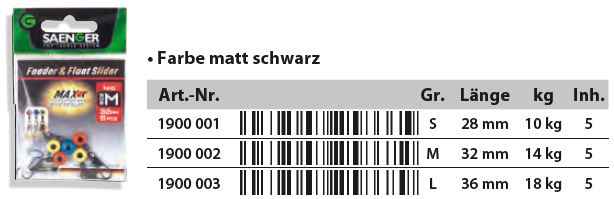 | Tragkraft Wirbel&Co | 10 kg, 14 kg, 18 kg |
