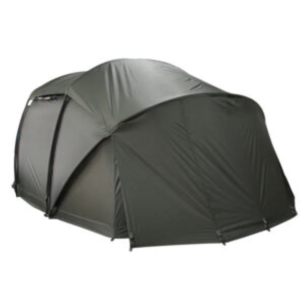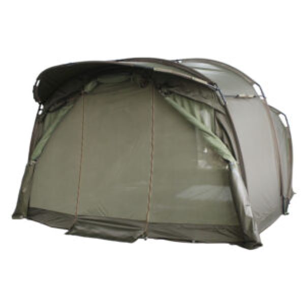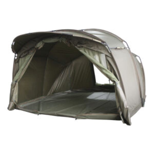 Innenraum, der von zwei Anglern genutzt werden kann. Zu den weiteren Merkmalen gehören eine Tuff-lite™-Bodenplane mit durchgehendem Reißverschluss und einer zentralen Flurmatte. Das Bivvy besteht aus 10.000 mm HH 210 PU-beschichtete Polyesterkonstruktion und einer hinteren Belüftungsöffnung, die geöffnet werden kann. Außerdem gibt es vorne einen großen Schirm für zusätzlichen Schutz vor Regen. Optional ist eine Dampfkappe und eine robuste Bodenplane verfügbar