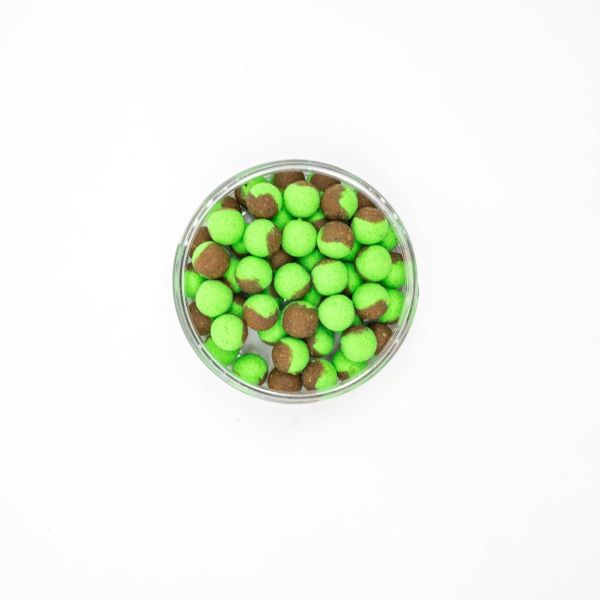 Unsere Two-Light Mini-Hookbaits bestehen zu je einer Hälfte aus unserem hauseigenen Fluoro Pop Up Mix, welche mit kräftigen und UV-Licht aktiven Farben hervorstechen und mit den Attraktoren Betain und N-Butyric Acid abgedreht werden, sowie zur anderen Hälfte des passenden GLM Boiliemixes.